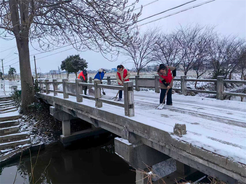 2026年的大雪如约而至,雪花纷飞间播洒着丰年的希望与快乐。大街小巷,随处可见一抹抹“巾帼红”、一支支巾帼志愿小分队在城乡烟火深处、道路桥梁近处,挥动铁锹扫把,挥洒融雪盐粒,清出“四通八达”的舒心顺畅,层层积雪融化成人们的心间暖流。 请跟随小编的足迹一起走进那些闪耀的动人瞬间 深夜,大雪初至。环卫女工率先出动,对桥梁、坡道等重点部位提前撒盐,严防低温冰冻,守护“第一道防线”。 清晨,靖城街道北大街社区巾帼文明岗整装出发,于纵横巷陌间破冰除雪,带动居民群众共同开辟出一条条温暖畅通的平安之路。 西来镇巾帼志愿小分队迅速开展清雪行动,集中清理铲除辖区主干道、桥梁和关键易滑点位的积雪积冰,确保群众出行安全无忧。 季市镇巾帼志愿者第一时间奔赴铲雪除冰一线,用坚守与奉献传递暖心温度。 滨江新区容湖社区“娘子军”先锋队主动“出击”,在凛冽寒风中传递真挚暖意。 城南办事处新江海社区巾帼志愿者对小区内主干道、单元门口、车库出入口、坡道等重点部位进行优先清理。 斜桥镇广福村巾帼网格员逐户走访种植大棚,查看棚体安全情况。 生祠镇巾帼网格员、保洁员清理村口桥梁、主干道等区域积雪,以实际行动保障村民出行安全。 新桥镇双龙村巾帼志愿者主动参与扫雪除冰行动,全力保障村民出行安全。 东兴镇巾帼志愿者入户帮助困难群众家庭铲雪,用心守护特殊群体居家安全。 城北园区(孤山镇)物业服务行业巾帼志愿者主动请缨,参与清扫区镇主次干道、学校、菜场、桥梁,同时开展撒盐融雪、积雪清扫作业。 马桥镇巾帼志愿小分队帮助清扫种植大户棚顶积雪,对大棚薄弱环处靶向加固,提升棚体抗积雪承压能力。 江阴—靖江工业园区巾帼志愿者参与清理辖区桥面、主干道积雪,同时排查危房、门面房、群租房及进村道路的积雪、冰冻情况,全力保障群众出行安全与居住安全。 |