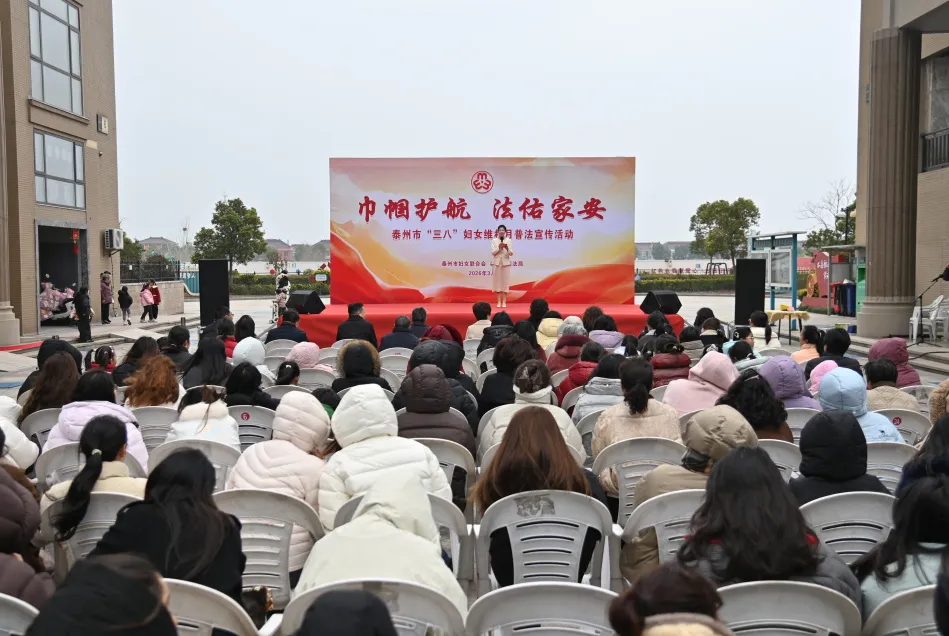 为进一步深化“巾帼普法基层行”,推动法治宣传教育深入妇女、走进家庭,近日,泰州市妇联联合市司法局,在姜堰区罗塘街道振宇社区举办“巾帼护航 法佑家安”泰州市“三八”妇女维权月普法宣传活动。市妇联党组书记、主席李蓓,市司法局二级调研员、市律师行业党委书记赵峰,市妇联副主席罗维真,姜堰区司法局党组书记、局长吴俊明,区妇联党组书记、主席潘晓红等出席活动,“泰慧调·凤城律姐说法”专栏女律师代表,姜堰区基层妇联干部、妇女群众等参加活动。
